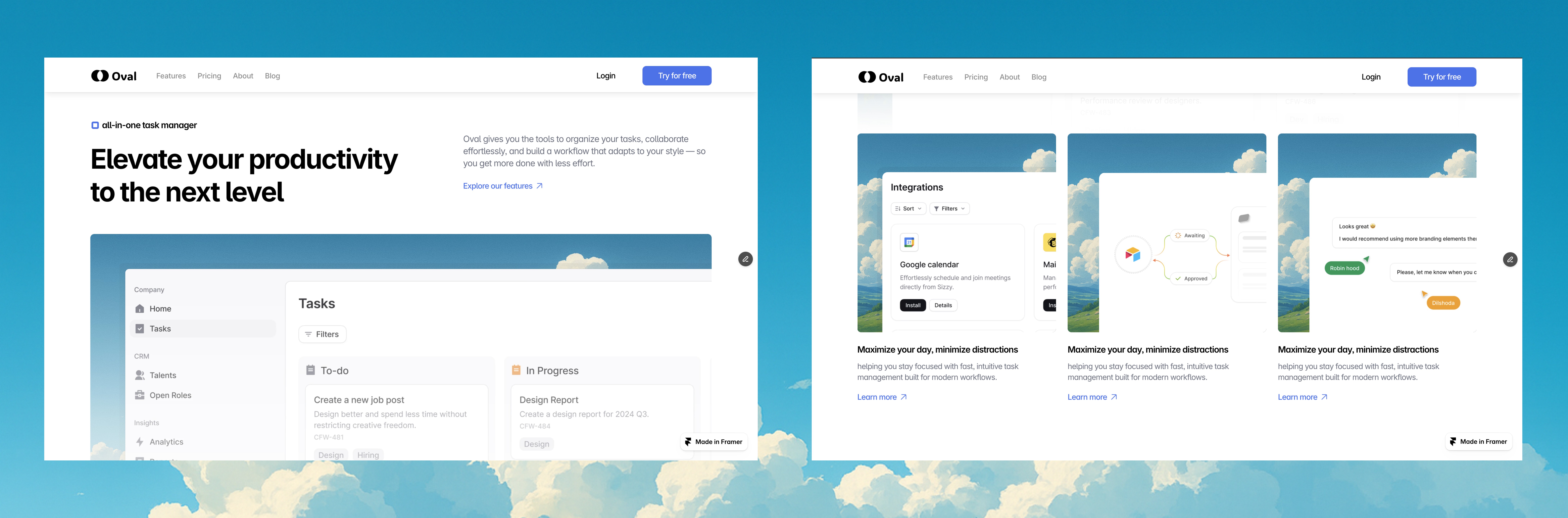 Building in Framer helped me keep full control over the final experience, making sure every detail of Oval’s personality carried through from design to real interaction.