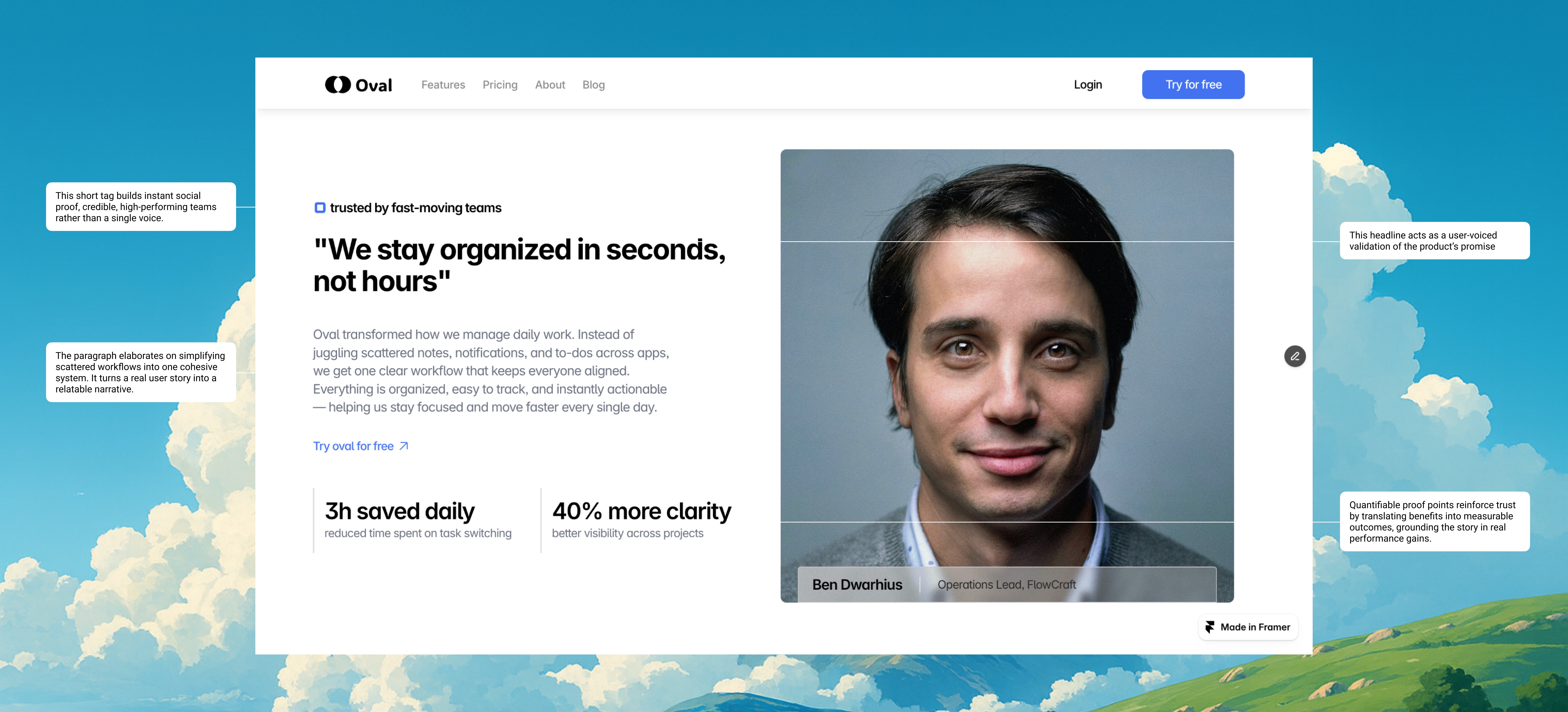Feature Section (Use Case) – Demonstrates how Oval fits into a specific real-world scenario.