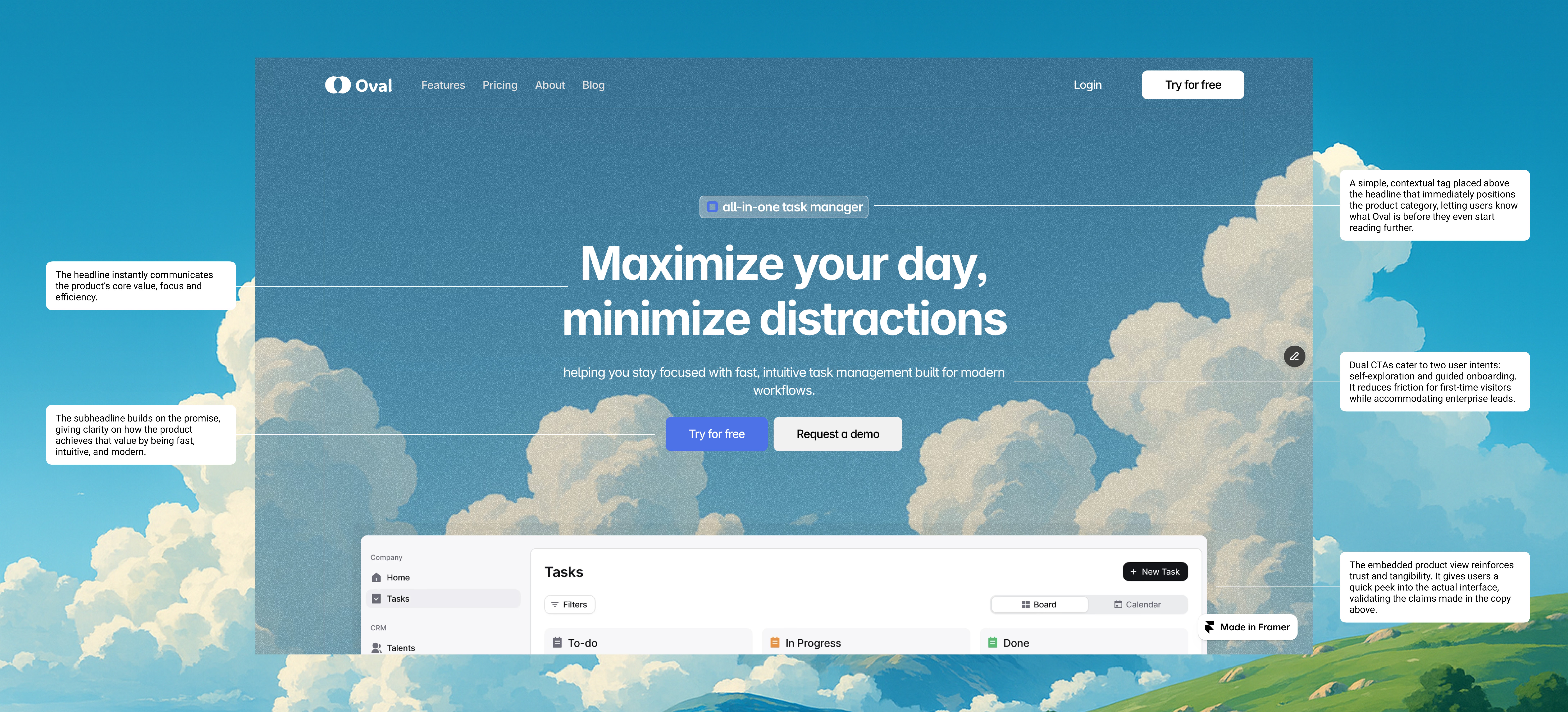 Case study: A simple, honest website that reflects Oval’s minimal task management philosophy and helps new users understand the product quickly.